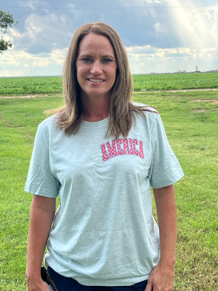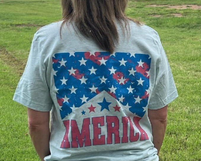 Printed on ice blue Bella Canvas unisex tee