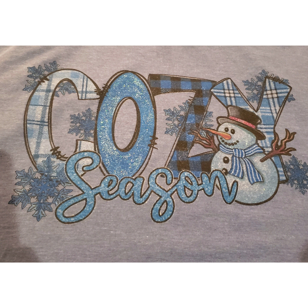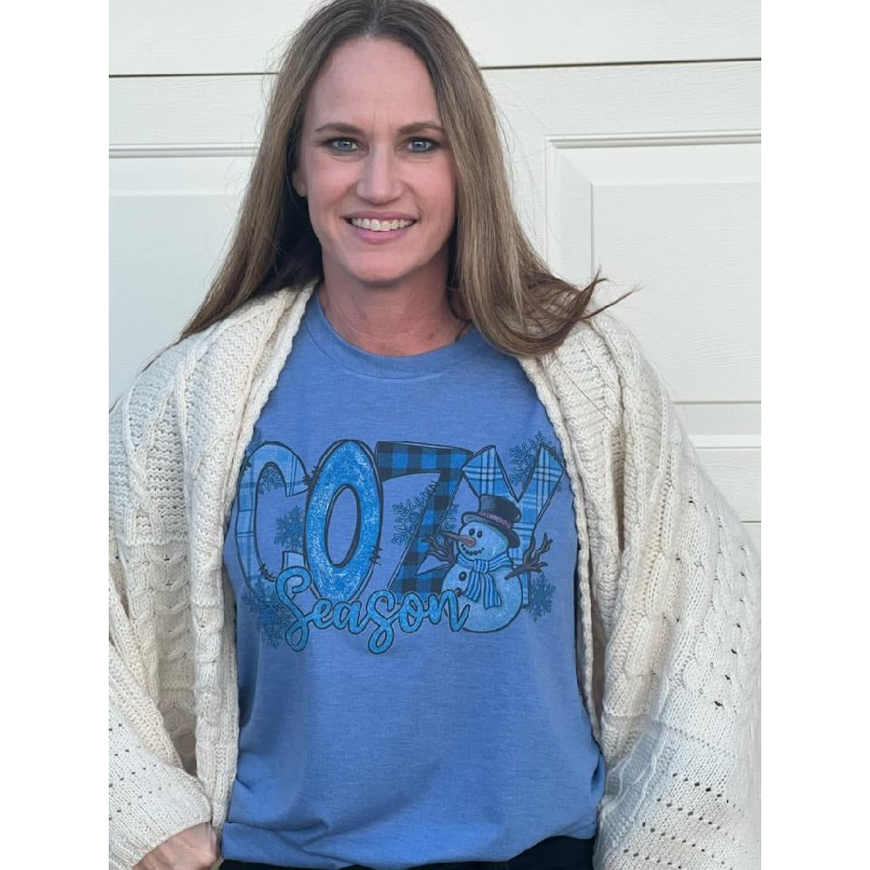 Winter tee with hand painted glitter! Printed on Blue Short Sleeve Crewneck
