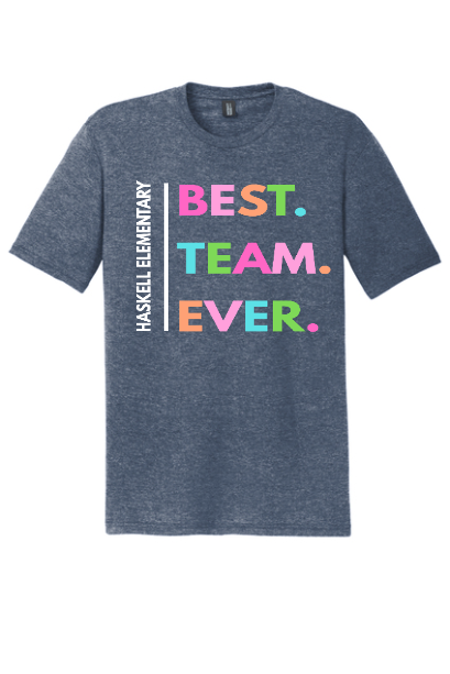 Printed on a navy frost District Brand Short Sleeve Tee.