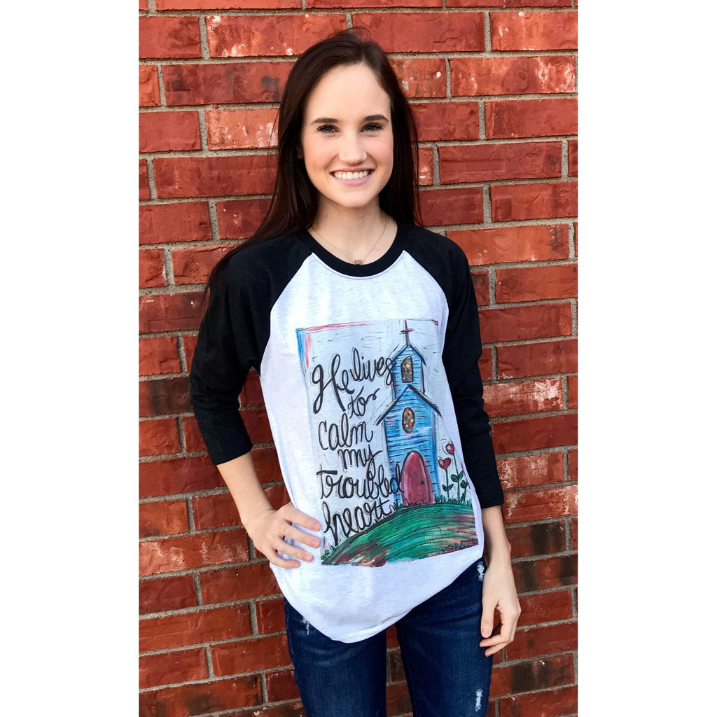 He Lives to Calm My Troubled Heart on Black Raglan (Fits True To Size)