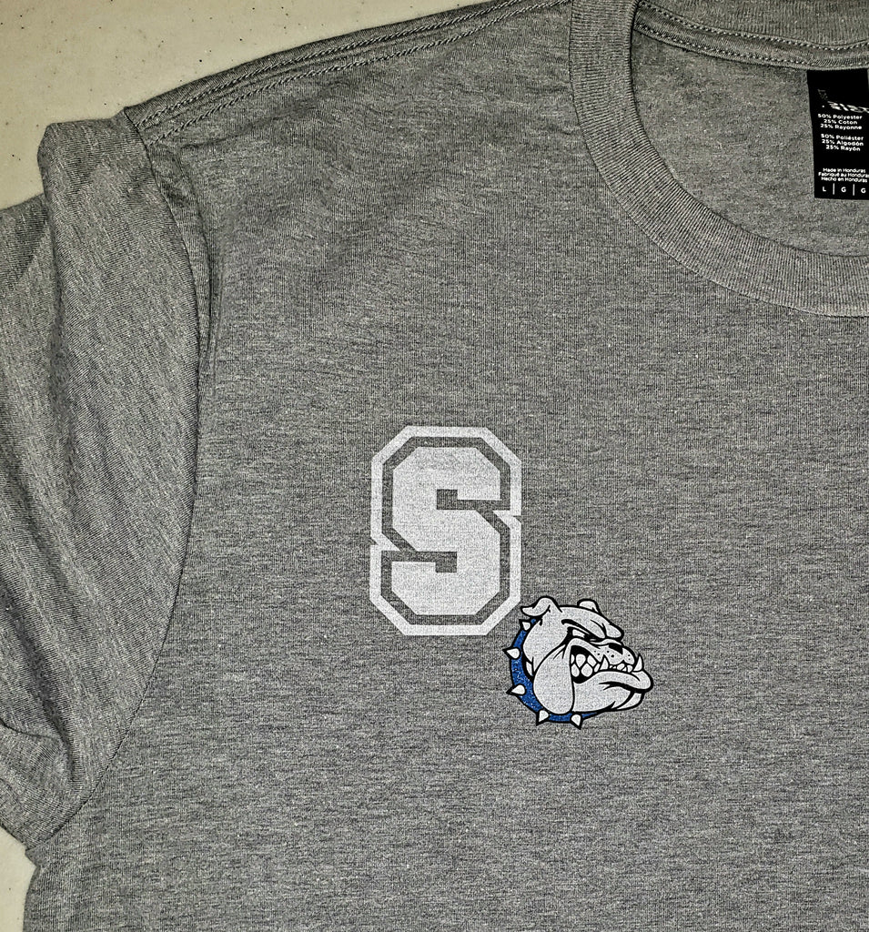 Printed on unisex District Brand grey crewneck. Perfect for men and women both!